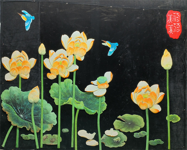 矽藻泥浮雕大(dà)荷花立體粘貼畫(huà)